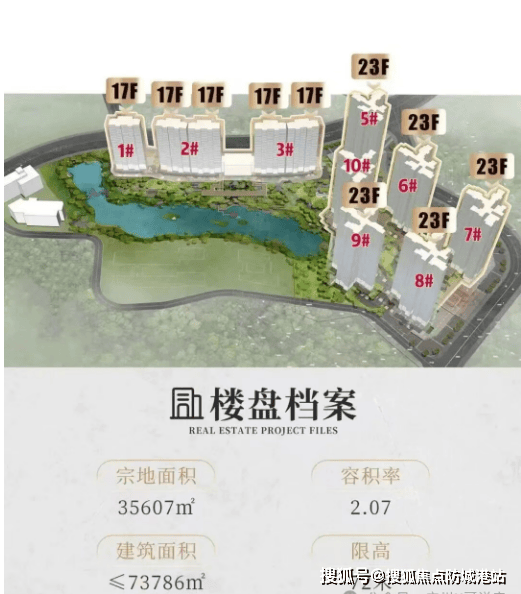 项目整体规划:项目总建面约7.38万㎡,规划9栋住宅,其中6栋塔楼,3栋板楼,2号楼和3号楼为连体板楼,可理解为总共有11栋住宅;塔楼为23层,板楼仅17层,均为低密度小高层设计,容积率仅2.07,限高60米,能够实现一线临湖,整体居住舒适度极高。项目规划有约1.75万㎡环湖带,环抱映辰湖,红线内所有建筑均围绕映辰湖打造,形成“推窗见湖、出门临湖”的湖居生活场景,同时周边环绕着约243万㎡的山湖林海,相当于3.5个天河公园,或是8.6个珠江公园,生态环境优越。